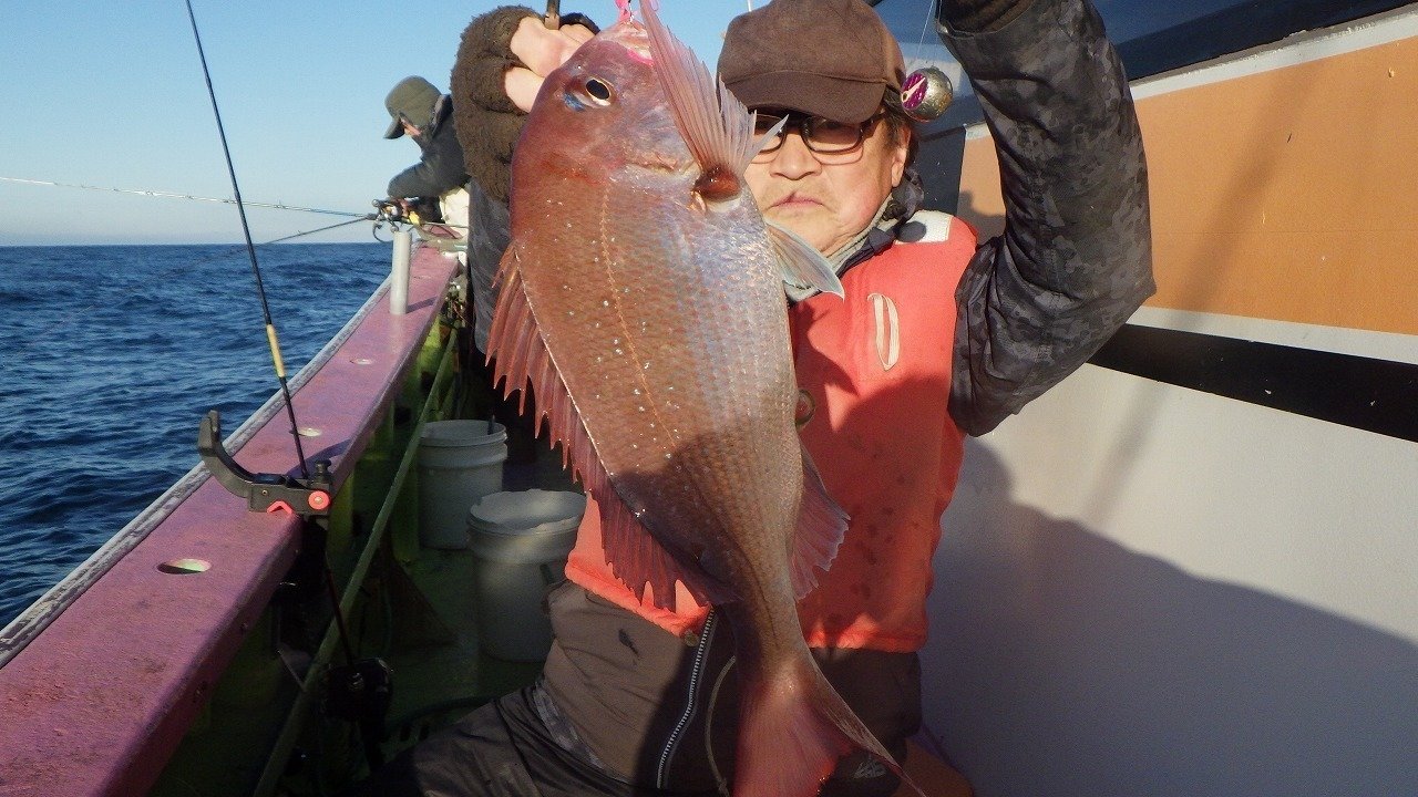 『朝船、マダイ、1.5k~1.0k~0.5k、船中67…