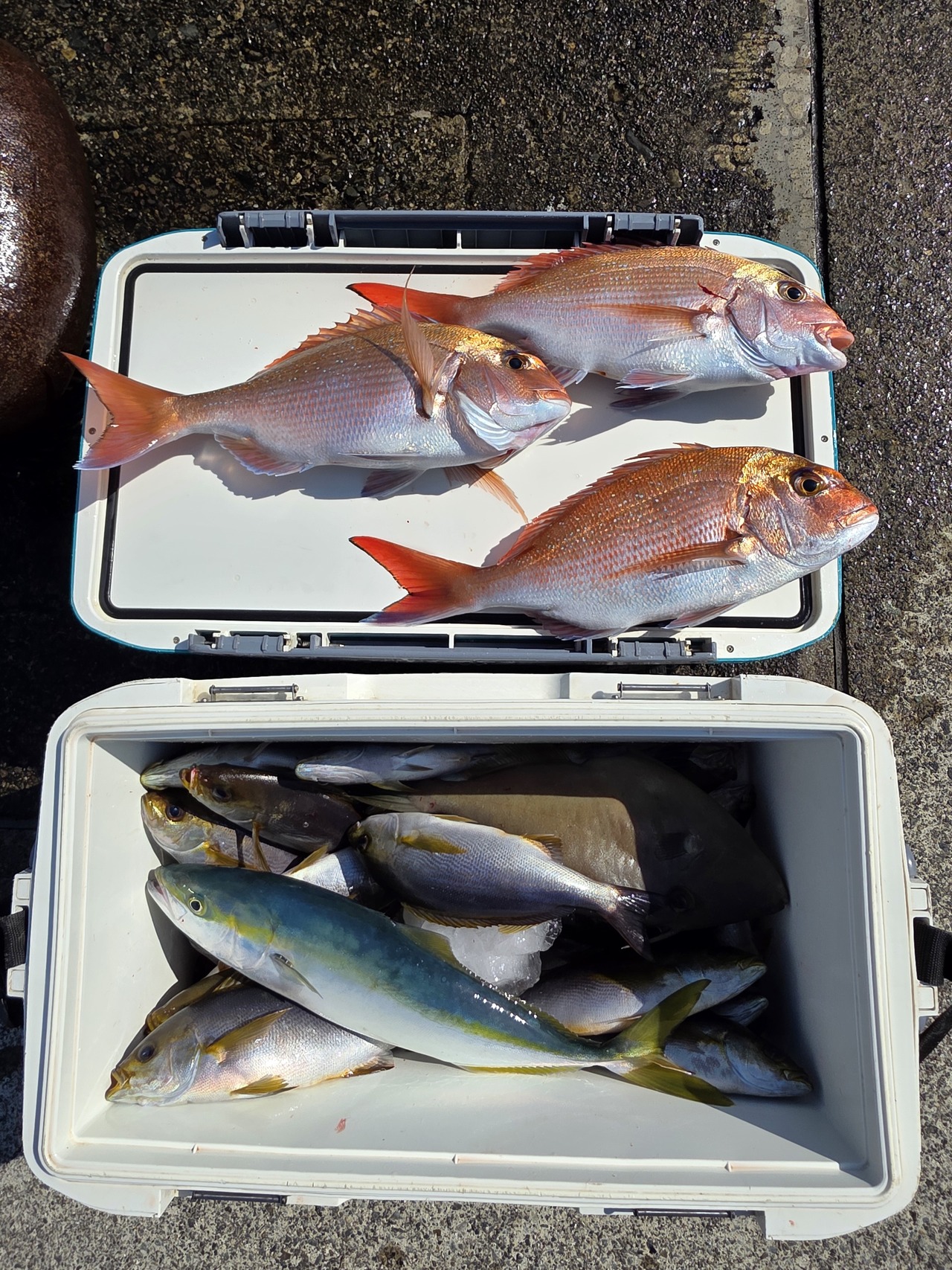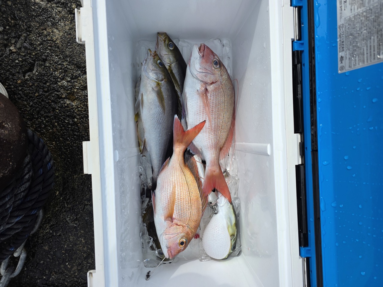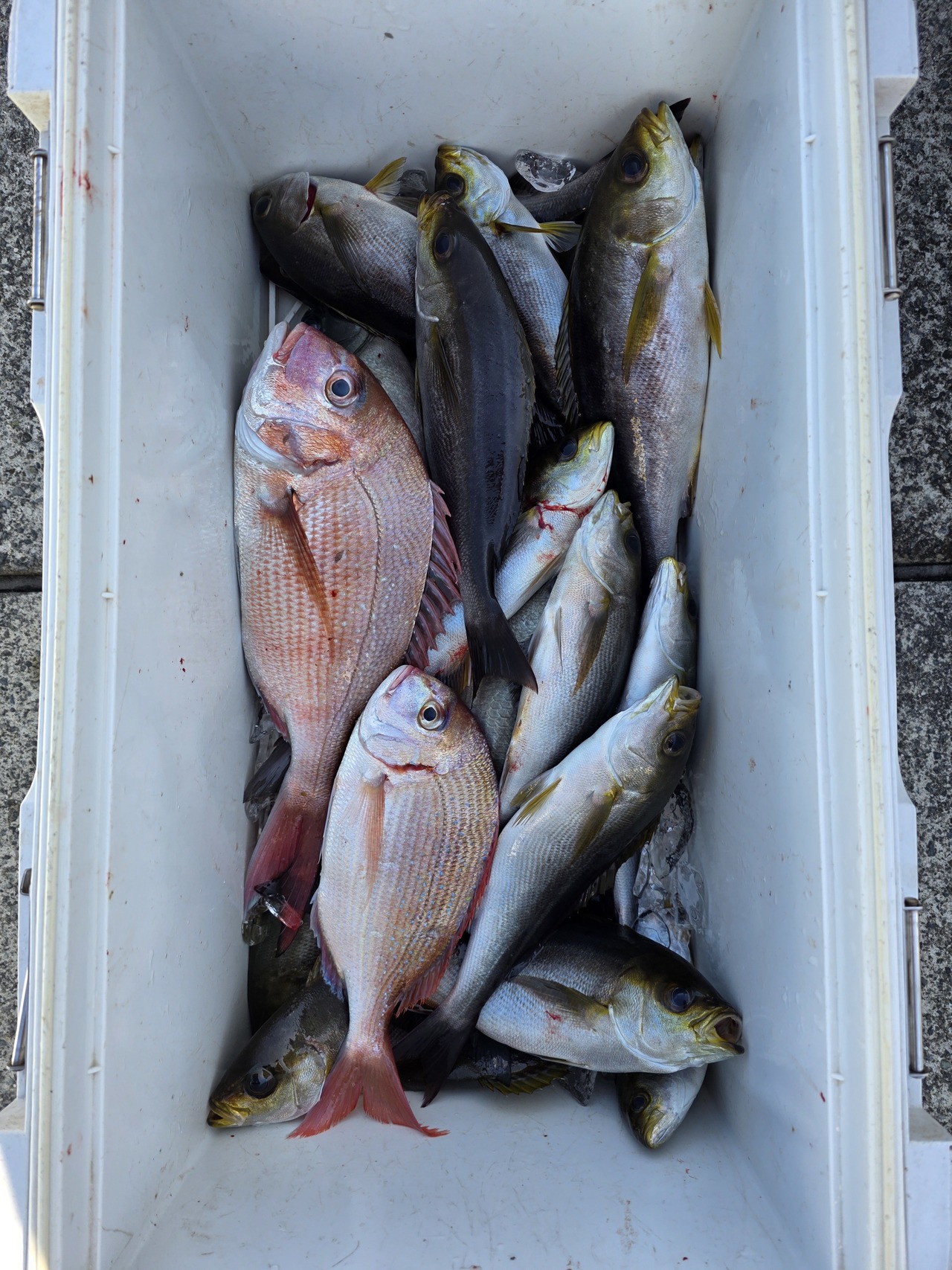 『午前の釣果マダイ五目船前半マダイ狙い、…