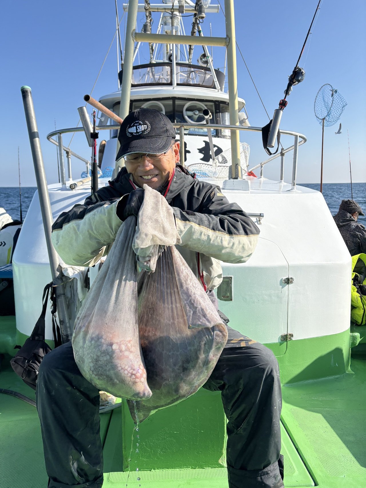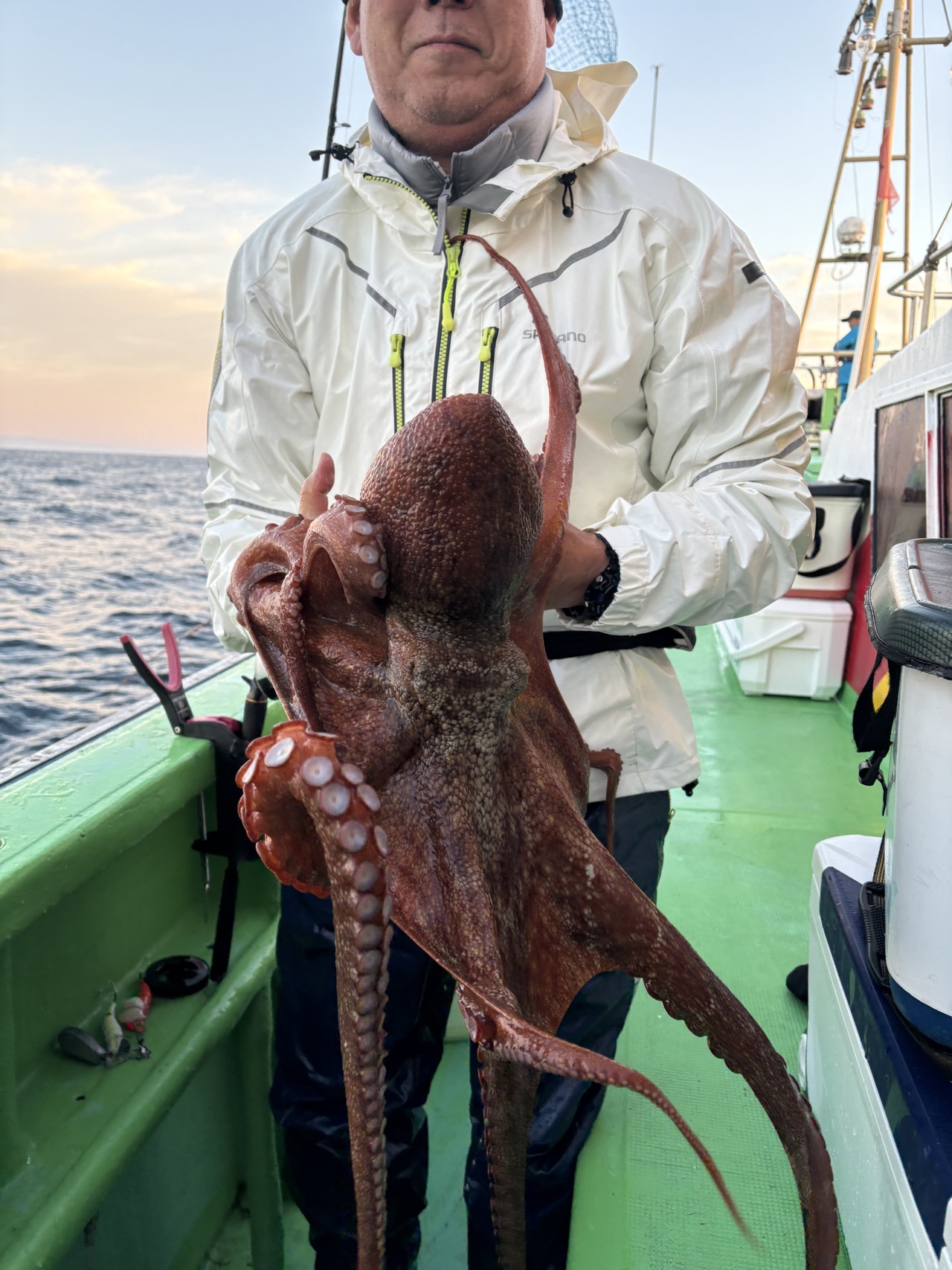 『大竹沖、マダコ船に出船。海上は穏やかで…
