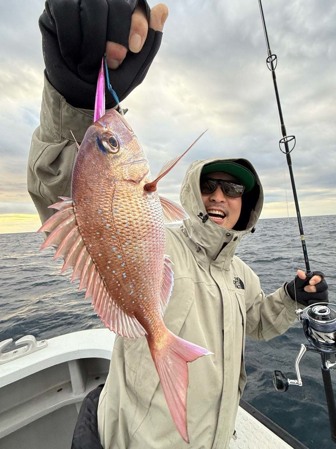 『お昼からも沖へ。深い所の反応でジギング…