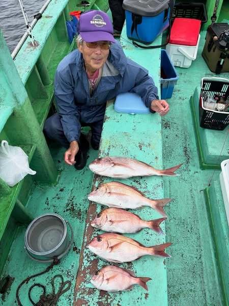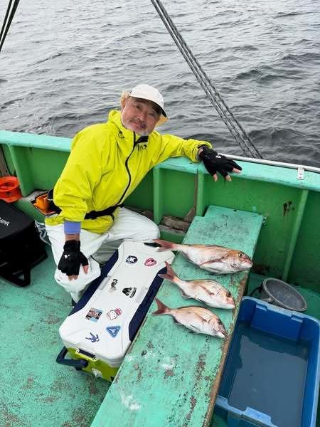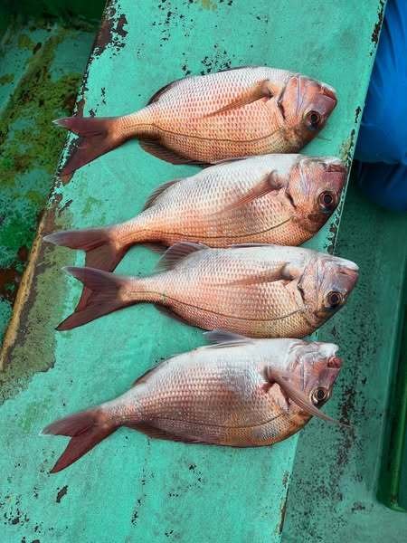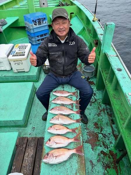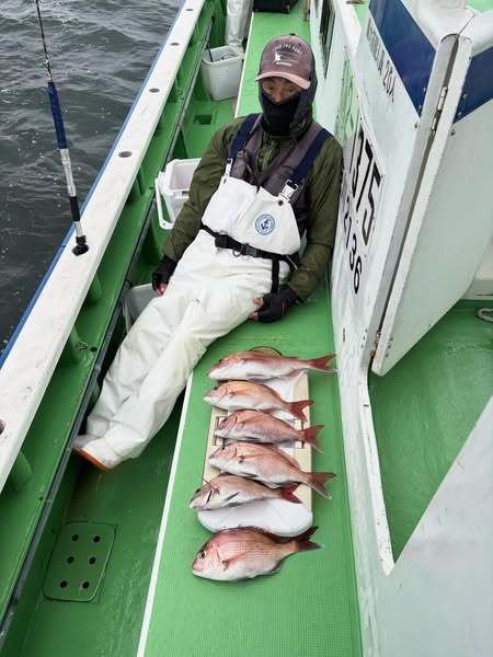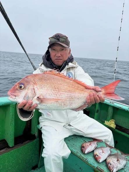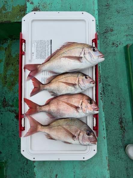 『コマセ真鯛船。潮の淀みなどにポツポツ当…