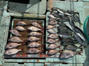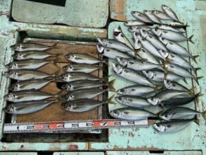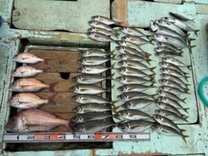 『本日の釣果。真鯵を中心に真鯛・真鯖。