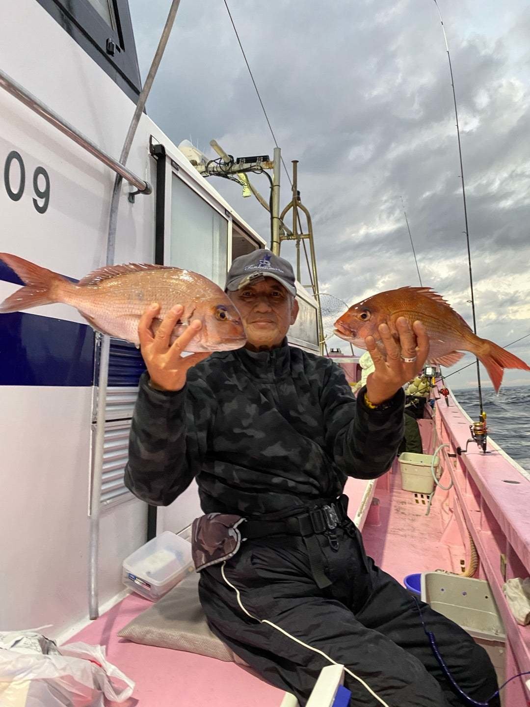 マダイ1〜8枚0.3〜2.1キロ。