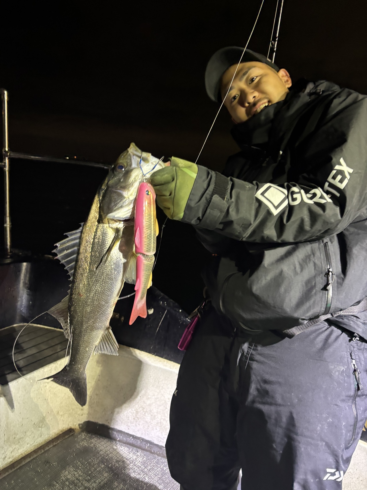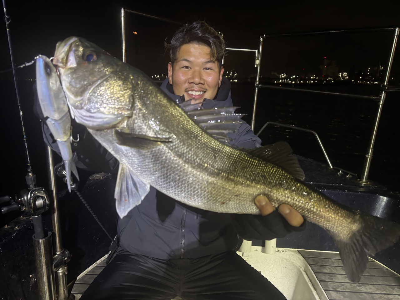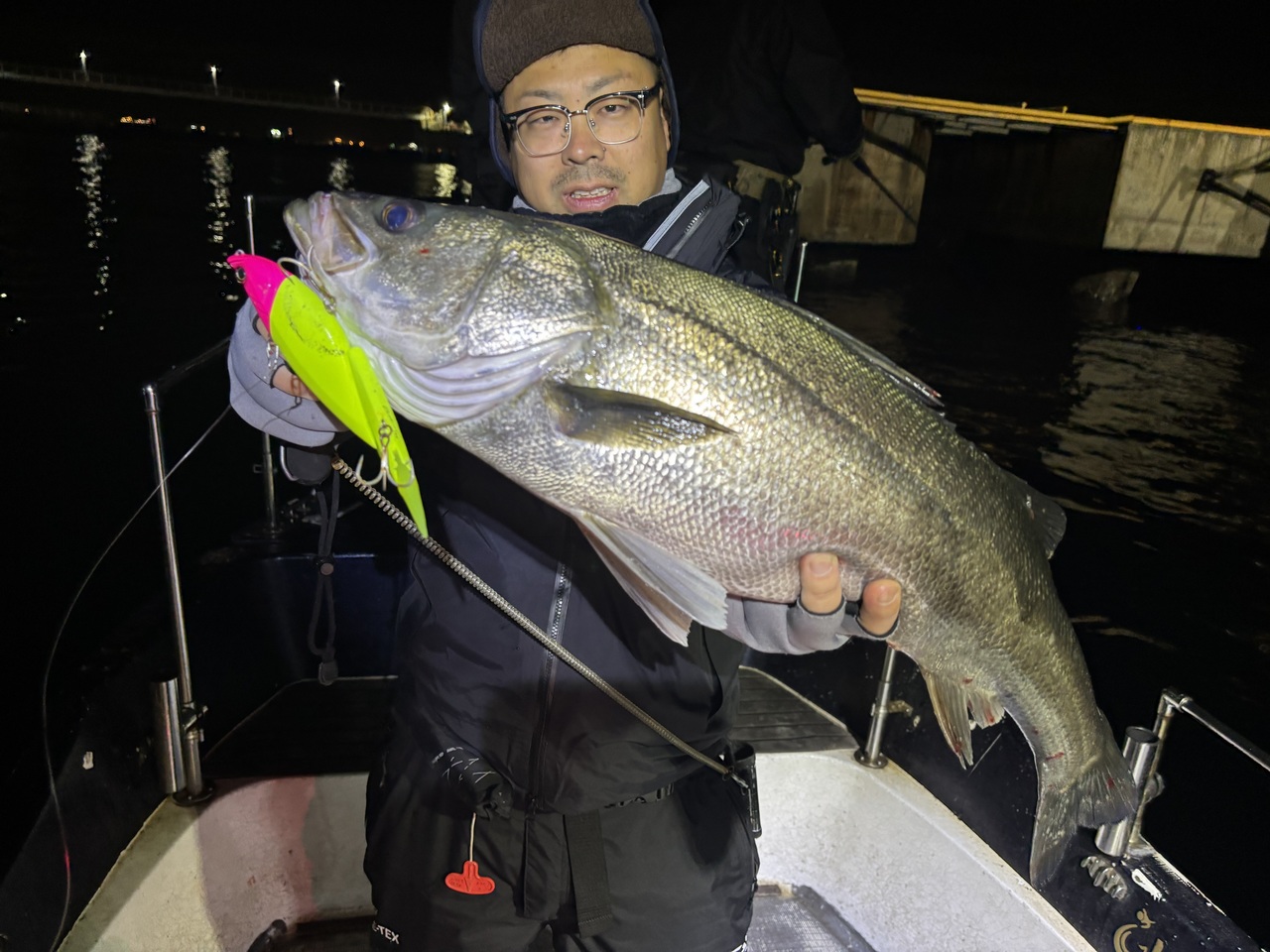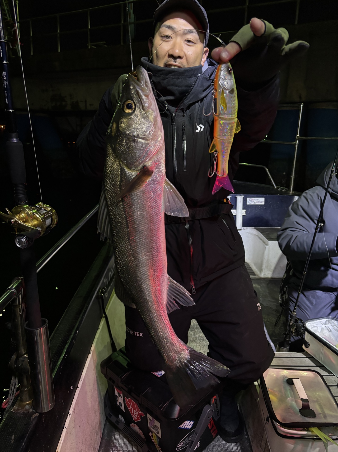 昼間も含めビックベイトは例年より早く落ち着いてしまい正直もう厳しいかな、と思いきや開始2投目位で小林さんダウスイ220でゲットw