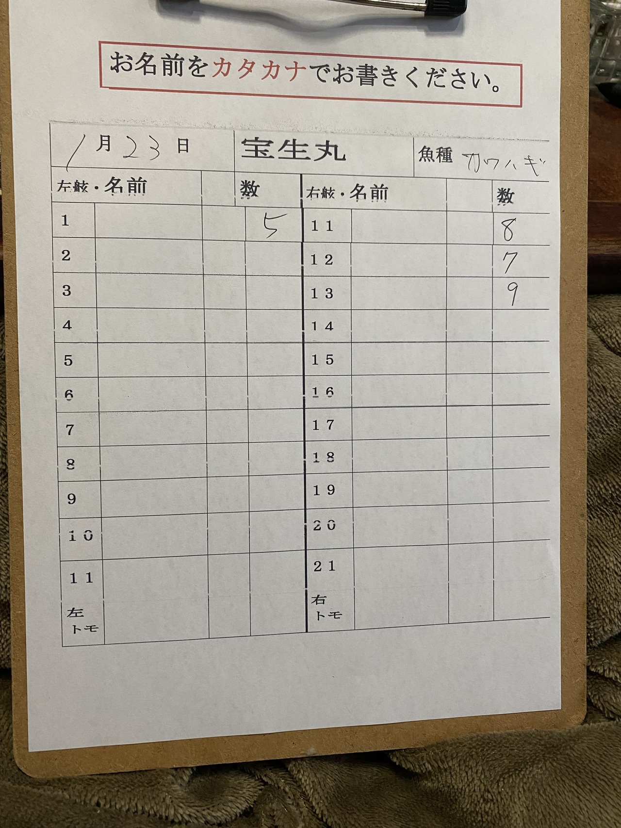カワハギの釣果など2026年1月23日宝生丸(千葉県/勝山漁港)