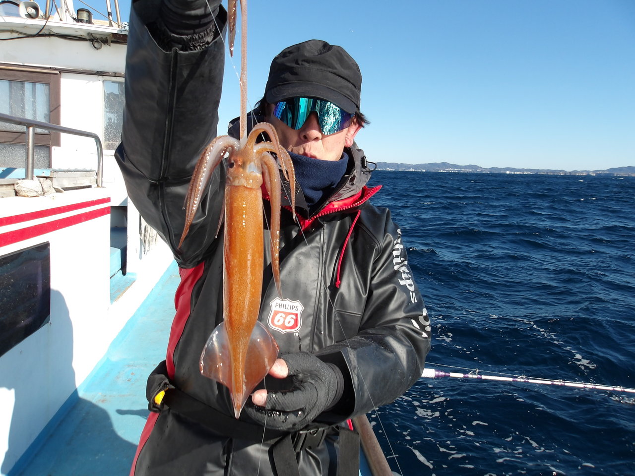 サメに、遊ばれました。ヤリイカの、3杯掛けも、有りました。