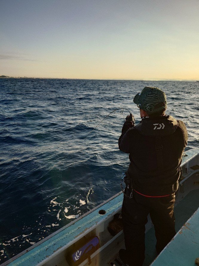 『AM青物ルアー船。朝練ジギング。モーニングパターン。皆さんで5打数、スパッと1サメっぽいのブレイク。モンPっぽいの止まらずブレイク。サゴシ1、ワラサっぽいのポロリ1。サゴシ見ただけで、後はヤラレてタイムアウトでしたm(__;)m極寒中の朝練お付き合いお疲れ様でした。』