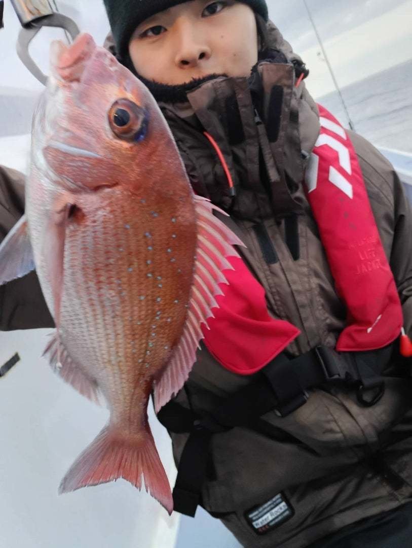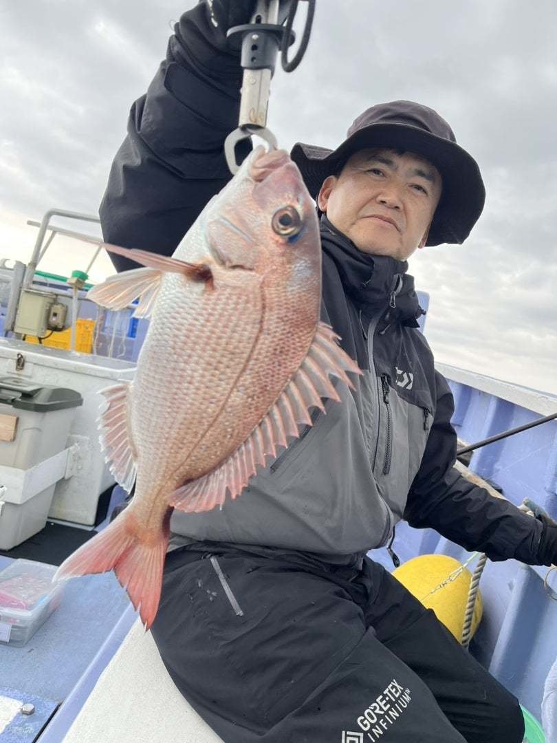 『午前マダイ、前半は30メートルラインでマダイ型があり大鯛も喰ったがバレてしまった、後半は浅場に移動し型が出ていた、海が悪くなり10時早上がり。』